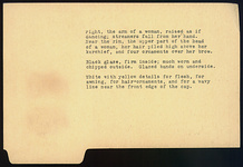 | Description: | Preserves small part of side and start of rim of a large plate with flat floor and high flaring rim. Moulding just above start of rim (wall) inside. Near the rim, the upper part of the head of a woman, her hair piled high above her kerchief, and four ornaments over her brow. | |