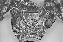 | Description: | Mended from three pieces. Part of wall and small piece of bottom. Pointed egg band above; on wall, garlands with Nikai and Erotes, kantharos, Tritons, birds. Groups of imbricate leaves around lower part. Gorgoneion on medallion. Metallic glaze; pinkish clay. | |