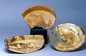 | Description: | About one-quarter of the side is gone; the rest of the plate mended from many pieces. A man in armour is represented fighting a human-headed serpent, the coils of whose body edge the rim in a series of loops. The greater part of the man's body and his right leg have disappeared, also the end of his right arm and the tail of the snake. The drawing is very spirited, although not careful. Pinkish-buff clay with bits; unglazed on the outside, yellow glaze with brown sgraffito on the interior. | |