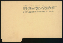 | Description: | Broken all around. From lower wall of lekythos. Above ground line, a discus with an owl in silhouette; around the owl black dots. At left, part of uncertain object. A lekythos in the National Museum (N.M. 17281) assigned to the Bowdoin painter (S.K.) has just such a discus, set up on the ground, in front of an athlete with jumping weights. There, at least some of the black dots are legible letters. For the owl on a discus, cf. N. Yalouris, "Athena als Herrin der Pferde), MH (Museum Helveticum) VII (1950), p. 53, note 307a. | |