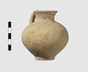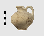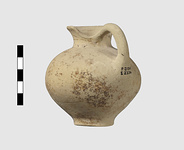 | Description: | Jug with Cutaway Neck. Intact. Surface damaged; rim inside, outside and handle painted once. Decoration faded, probaby the vase was covered over all with paint(?). | |