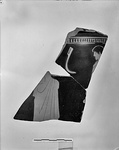 | Description: | Two fragments, one mended from two pieces, give parts of the pictures on both sides and the beginning of the rim. Non-joining lug handle. Reserved groove at the junction of mouth; band with strokes above the picture. On each side two youths conversing. A) Lower half of one figure to right, wrapped in himation, feet missing; head and part of chest of youth, wrapped in himation to left. Between them a strigil hangs. B) Head and chest of a youth to right. He wears himation and holds lyre in right hand. Of his companion only part of the forehead hair is seen. Between them a cross-like object hangs. N.B. difference in style of the two sides B) painted by another hand in a more developed style(?). Relief contour only for the lyre and the cross-like object. | |