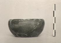 | Description: | Three fragments preserve over half the original. Underside recessed. Walls convex. Underside reserved and reddened, with two glazed circles and a dot. Glaze fired dull black, streaked with gray and brown. | |
