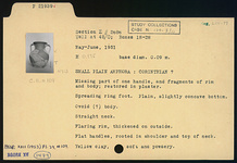 | Description: | Missing part of one handle and fragments of rim and body; restored in plaster. Spreading ring foot. Plain, slightly concave bottom. Ovoid body. Straight neck. Flaring rim, thickened on outside. Flat handles, rooted in shoulder and top of neck. Yellow clay, soft and powdery. Corinthian? | |