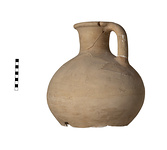 | Description: | Many joining fragments mending to three, with a number of small pieces not joining. Most of neck and rim, and much of shoulder preserved, with most of the vertical handle; also part of one side, with one horizontal handle; and wall fragments. Nothing of lower wall or base preserved. Rounded body; thickened lip, projecting; rolled handles. Substantial fabric; pinkish clay with bits; smooth light buff slip. ADDENDA Fragments in paper bag [15 February 1957]. | |