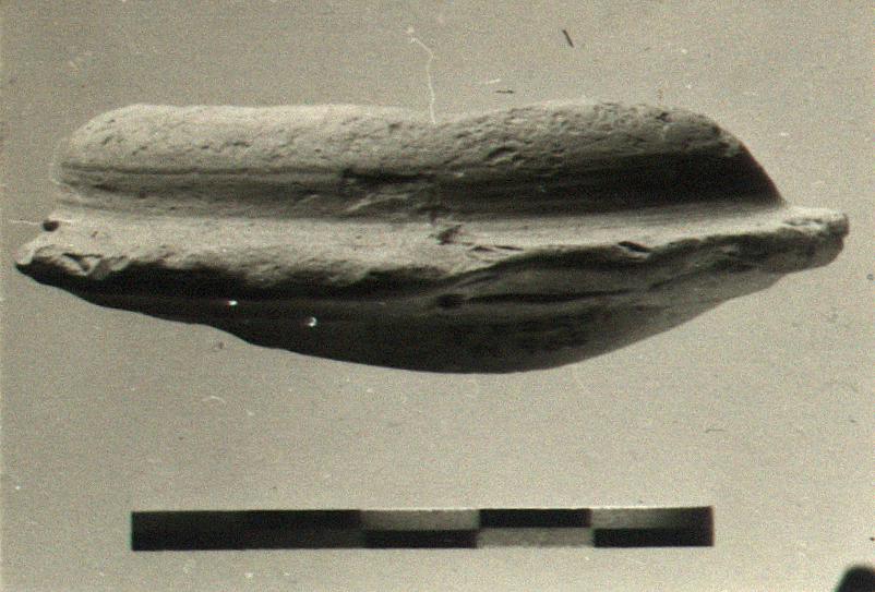 | Description: | A single fragment preserves part of bowl and of horizontal flange, the flange neatly offset beneath. Pinkish-buff clay; unglazed; a few traces of white engobe. | |