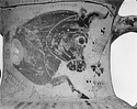 Yellow-buff clay; the glaze thin and worn; fired dull black to red. Ample use of added red, brilliant when found, but extremely fugitive. Traces remain on the bulls' necks, on the tongue pattern, on the broad band below the tongues, and on the hearts of the palmettes.