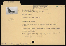 | Description: | Torso and neck only of horse; head and legs missing. Pinkish-buff clay; remains of thick black glaze on neck and body. | |