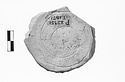 | Description: | Broken all around. Medallion almost complete: within border of dots, the upper part of a bearded figure, right, wearing a himation leaving the right shoulder free; right arm bent at elbow, hand raised towards chin. Orange-buff clay. Matte red glaze on inside, somewhat flaked; bottom unglazed. Cf. P 15175, same head: Zeno? | |