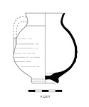 Description:   Handle, much of lip and part of body missing. Restored in plaster. Globular jug on small ring foot which is conically hollow beneath. Neck flares out to a plain lip. Single vertical handle. Body very lightly wheel-ridged.