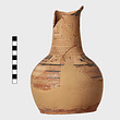 | Description: | Upper part mended from several pieces; rim, part of neck and most of handle missing; one wall fragment does not join; no join between upper part and bottom. Low ring foot; globular body; twisted handle. Body to shoulder covered with glaze bands alternating with reserved bands in each of which two narrow glazed bands. On shoulder, at center, panel of horizontal chevrons, framed by pairs of narrow bands; to either side, a water bird, facing in; then black glaze. On the neck, reserved panel at front; above, hatched maeander, with a central rectangle filled by horizontal chevrons; below, dotted double zigzag; all framed by narrow bands in twos and threes. Lip glazed. Pinkish-buff clay; black glaze, much worn. | |