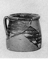 | Description: | Two joining and one non-joining fragment of upper wall and lip; partly restored in plaster. From a pot similar in shape to P 8512, etc. but glazed and provided with a single vertical handle. The rounded wall contracts to a narrow everted lip; the body with wheel ridges. Reddish-buff clay; dull, light reddish glaze on exterior and inside lip. | |