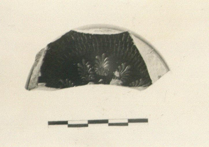 | Description: | Part of foot and floor preserved. High foot, a groove in the resting surface. Impressed decoration: palmettes surrounded by rouletting. Pinkish-buff clay; completely glazed except reserved grooves in the resting surface and at junction of foot and wall. | |