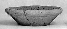| Description: | Mended from many pieces; small parts of body restored in plaster. Broad slightly concave resting surface. Flaring sides; rim rolled, set off from sides by groove. Pinkish-buff clay with many impurities. Heavy fabric. Flinty grit over grinding surface, ground away in center. | |