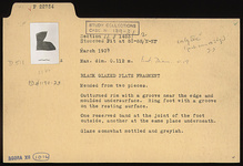Description:   Mended from two pieces. Out-turned rim with a groove near the edge and moulded undersurface. Ring foot with a groove on the resting surface. One reserved band at the join of the foot outside, another at the same place underneath.