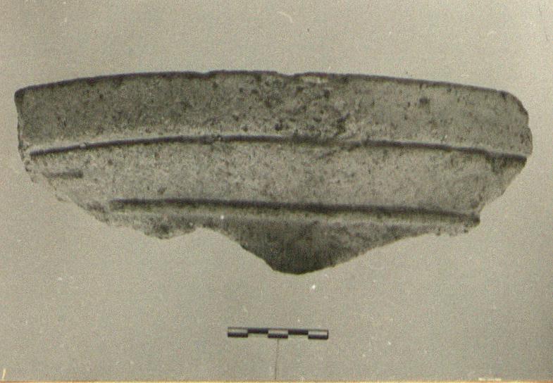 | Description: | Fragment of bottom and of base moulding of large object, with broken edge of floor on inside. Probably from a stand. Coarse reddish-buff clay with bits in it. | |