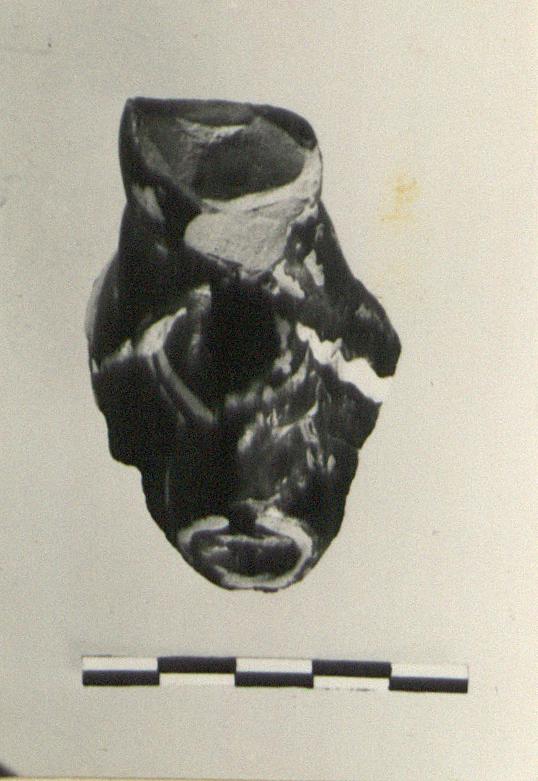 | Description: | Lower part of a twisted handle with a mask at lower attachment. Pinkish-buff clay. | |