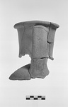 | Description: | Many joining fragments preserve about half the circle of the neck, part of the rim and one handle complete with a little of the shoulder. A non-joining fragment gives a little of the rim and the upper part of the second handle. Coarse red clay with gray core; traces of lighter surfacing. | |