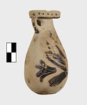 Description:   Pear-shaped alabastron. Intact except for hole in bottom, evidently scraped on inside. Small vertical handle, just below rim and attached to it.