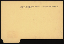 | Description: | Section of rim, body, and one handle, preserved; mended from many pieces; foot and one handle missing; restored in plaster. High flaring rim, set on pointed bowl; rim drawn in where it meets sides; rolled handles turning up slightly, set on this shoulder. Covered with white slip inside and out. Inside has dull black glaze over the white. On outside, two narrow horizontal lines bound handle zone, and in zone groups of verticals at intervals. Handles also covered with black glaze. Pinkish-white thin fabric. Slip applied unevenly. Dull black glaze. | |