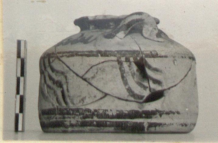 | Context: | Mycenaean Chamber Tomb opposite stoa of Attalos Pier 15, in modern drainage ditch. Pit under skeleton 4. | |