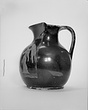 Good glaze; buff-red clay. Underside of foot had a red wash of which only traces remain. Inside neck glazed; the rest of the inside covered with dilute glaze.