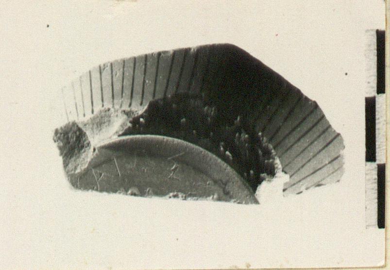 | Description: | From base of a black glazed Corinthian type skyhos; rays above foot. Incised beneath, on reserved space within foot: <graphic> | |