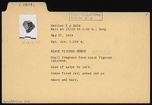 Description:   Small fragment from black figured lekythos. Head of satyr to left.