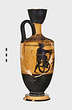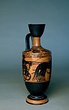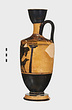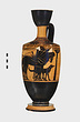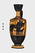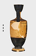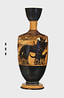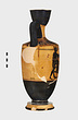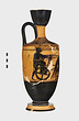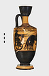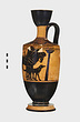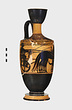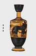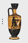 Cf. the people and the dog on Haspels (1936), pl. 24, 2a (also the chariot and horses though not so completely). For the profile of the foot, cf. Haspels (1936), pl. 26,1, but the mouth differs. For the foot of this and of the fountain house lekythos (P 24106), cf. also Jacobsthal, O., pl. 54a (for the fountain house) and pl. 54b (for this piece).