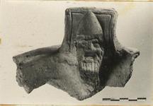 | Description: | The lug and part of the rim of a Hellenistic brazier. Satyr's head with tall cap. The tip of the beard broken away. Coarse red clay. | |