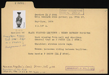 | Description: | Much missing from wall and shoulder. General type as P 24316 (ΣΑ 2526): This is the characteristic general type for the large proportion of the lekythoi from this group. Bell mouth with variations in height and spread; lip usually reserved, occasionally glazed. Disk foot of varying thickness; below picture either one or two reserved lines. Added colors more or less well preserved. Only substantial variations are noted in the following descriptions. Shoulder: strokes above rays. Scene: horseman riding between hoplites. Same hand as P 24339 (ΣΑ 2549). ADDENDA Conservation, vol. I-3, 4. | |