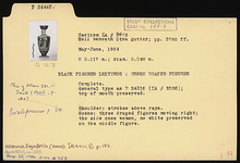 | Description: | Complete. General type as P 24316 (ΣΑ 2526): This is the characteristic general type for the large proportion of the lekythoi from this group. Bell mouth with variations in height and spread; lip usually reserved, occasionally glazed. Disk foot of varying thickness; below picture either one or two reserved lines. Added colors more or less well preserved. Only substantial variations are noted in the following descriptions. Shoulder: strokes above rays. Scene: three draped figures moving right; the side ones women, no white preserved on the middle figure. | |