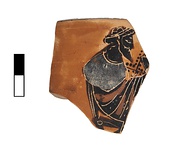 Scene: upper part of a man (Dionysos) seated right, holding kantharos.