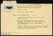Description:   A little of rim and wall, and part of one handle, missing. Small and light version of P 24587 (ΣΑ 2797); the plain raised base continuous with the wall and slightly concave beneath.
