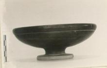 | Description: | Chip missing from rim. Similar to P 24606 (ΣΑ 2816), but smaller. The rolled lip set off by a scraped line; the edge of the disk foot lightly rounded. Reserved: edge of foot; resting surface; space at top of foot cone. | |