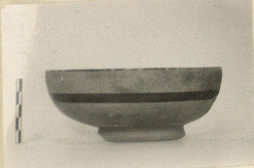 | Description: | Single fragment preserving a little of foot and part of wall and rim. One of the largest one-handlers from this well. Rounded ring foot. Good glaze inside, on top of rim, for a band around the wall outside and on the inner face of the foot. Cf. Agora XII, no. 737. | |