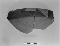 | Description: | Five joining fragments. Bowl with vertical rim. Gritty orange-brown clay, somewhat darker at core; scattered white bits in it. Polished surface on outside. Handmade. CWB: perhaps Cycladic or early Helladic. Sherds in box 350. NB: no gray Minyan or matte painted found with this fill. | |