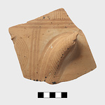 | Description: | Belly-handled amphora. a) Curved belly piece preserving handle attachment. Hatching on handle. To left, panel with concentric circles. b) Curved piece, to left, panel with concentric circles, cross in center. To right, vertical ornament. Glaze much worn. Middle Geometric. | |
