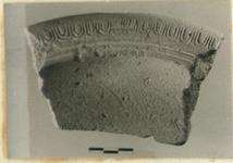 | Description: | Rim fragment. Shallow basin with heavy moulded rim. A band of ovolos impressed on top of rim. Slightly pinkish-buff clay, light yellow on surface. | |