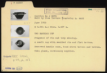 | Description: | Fragment of rim and body missing. A small cup with moulded rim and flat bottom. Reserved: handle zone, band above bottom, and bottom. Thin glaze, carelessly applied. Subgeometric survival. | |