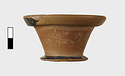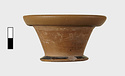 | Description: | About half rim missing. Spreading foot. Red inside lip. | |
