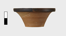 | Description: | Much of rim missing. No foot. Flat bottom. Red inside lip. | |