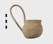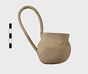 | Description: | Some of lip missing; restored. Rounded bottom. High swung handle. Pale buff clay. Unglazed; handmade. Argive Monochrome. | |