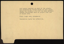 | Description: | Handle fragment; a little of the body preserved at the lower junction of the handle. Upper end broken away after start of curve to neck. Handle composed of a broad band bent outward along the edges so the section is concave-convex. It widens slightly toward the neck. The inside is painted with black glaze thinning to greenish-brown. The outside is decorated with a row of rosettes of which four and part of a fifth are preserved: silhouette in black glaze, on which the drawing is incised and purple applied on most of the petals. Row bordered by narrow bands of thin glaze. Below the lowest, a bit of the body pattern: double horizontal band of purple over row of black dots. Decoration hasty but effective. Clay light red, micaceous. Early Black Figure Amphora Type A. | |