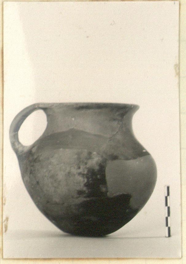 | Description: | About half preserved; restored. One handle. Rounded bottom. Outside very blackened by fire. Fits nicely on P 25008 (ΣΑ 3130), pot stand. | |
