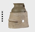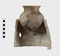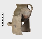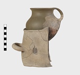 | Description: | About half preserved; restored. One handle. Rounded bottom. Outside very blackened by fire. Fits nicely on P 25008 (ΣΑ 3130), pot stand. | |