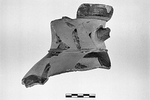 | Context: | Cut in front of S.E. Fountain House, layer 3, around and below top of rubble wall. | |