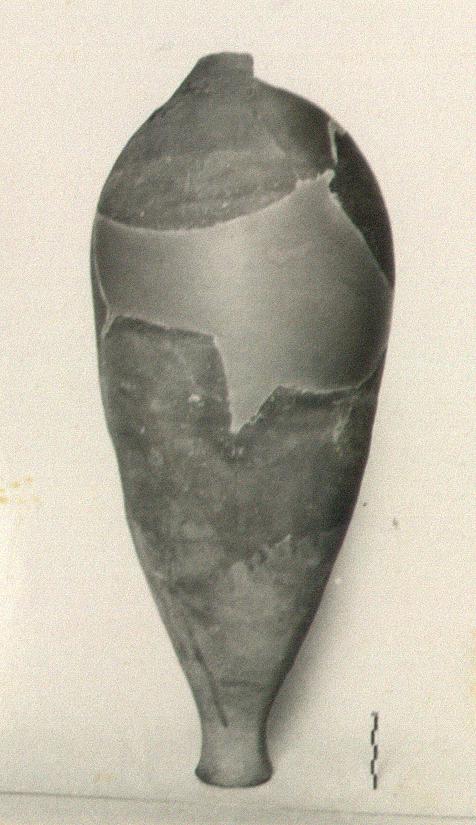 | Description: | Much of upper part missing. Partly restored in plaster. Black dipinto on shoulder: <graphic> Dull red glaze except towards toe. ADDENDA Sparta series [JWH]. | |