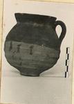 Description:   Intact. Slightly flaring lip, sliced off on top; round body, with wide-spaced ribbing; flat wire-drawn base.