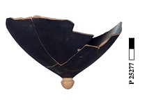 | Description: | Lower part only preserved. Trace of handle. Reserved knob at bottom. Thin fabric; good glaze inside and out. | |